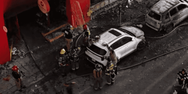 El incendio se propagó en minutos, y los automóviles estacionados frente a la tienda comenzaron también a arder.