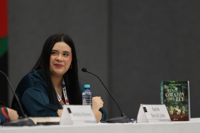 La tarde se volvió un estruendo en el auditorio Enrique González Martínez de la FIL Guadalajara. Decenas de jóvenes fanáticos aplaudiendo, riendo, expectantes, cuyos murmullos aislados se convirtieron en gritos con la aparición tan esperada de Karine Bernal Lobo. La autora que, gracias a su saga “Rey”, ha logrado que miles de lectoras adolescentes y jóvenes llenen salas enteras, emocionadas por un universo que mezcla romance, drama familiar, traiciones, perfumes, reinos ficticios y misterios que se desarrollan en los bosques.
