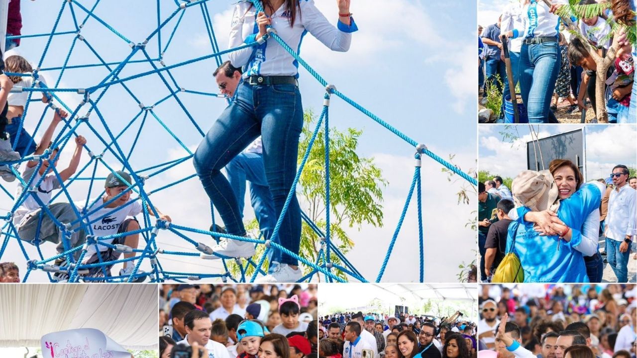 Señaló que han inaugurado puentes que unen zonas desconectadas, “donde hoy pueden entrar servicios; y parecen minucias, pero llevamos casi 300 parques vecinales y estamos a punto de inaugurar dos parques metropolitanos, uno de 74.7 hectáreas, otro de 25 hectáreas; también crecimos el parque metropolitano donde se hace el evento de los globos, en 22 hectáreas”.