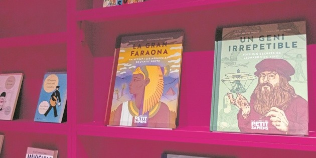 La tercera sala muestra el siglo XXI: muchos más libros, como se ve hoy en una librería, en catalán y en castellano, ordenados con una intención pedagógica para mostrar estrategias de tipografía, color, fotografía y diseño de colecciones. Las tres salas forman un recorrido: del taller antiguo, más vacío, a la explosión de color y diversidad actual.