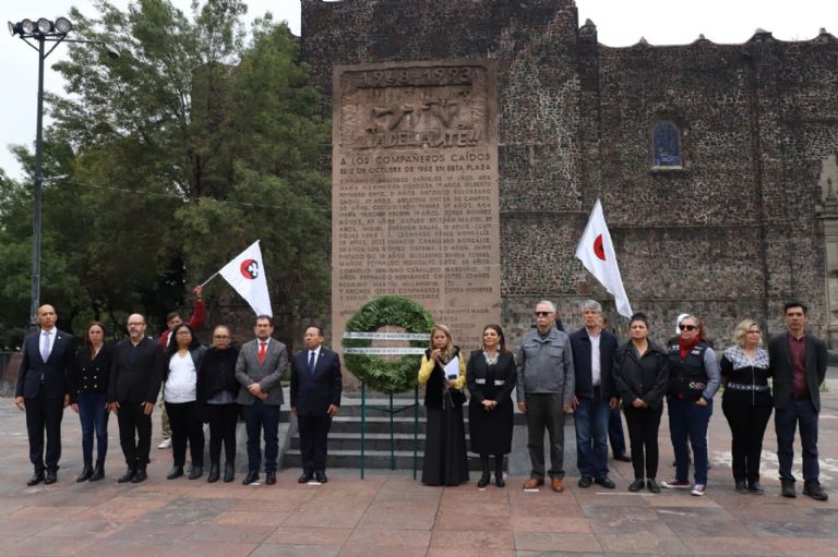 “El 68 nos enseñó que la esperanza no se reprime y que la lucha por los derechos florece siempre. Hoy honramos su legado y levantamos la voz también por Gaza y Palestina, porque la represión y el genocidio no tienen fronteras”, afirmó Brugada
