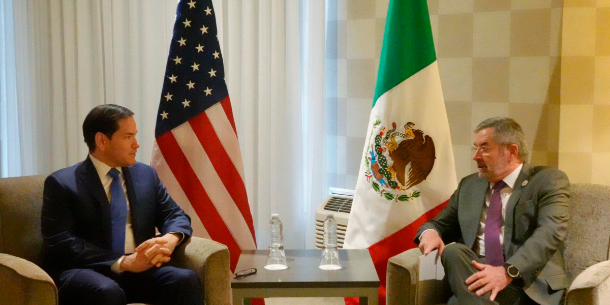 El canciller Juan Ramón de la Fuente se reunió este jueves con el secretario del Departamento de Estado de Estados Unidos, Marco Rubio, en el marco de la Reunión Ministerial de Relaciones Exteriores del G7, que se realiza en Ontario Canadá.