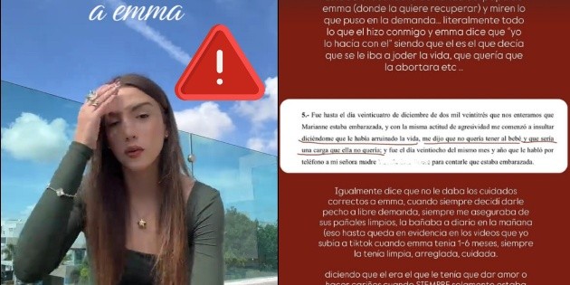 A través de su cuenta de TikTok oficial, Marianne Gonzaga subió un video con un tono más serio, explicando a sus seguidores sobre su situación actual, ya que, en sus palabras, el abuelo paterno de Emma quiere quitarle la custodia.