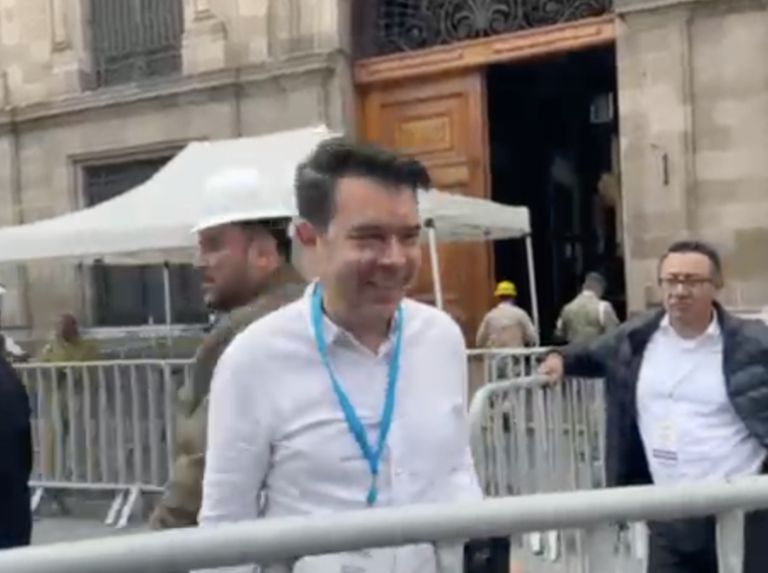 Llega también Carlos Merino, ex gobernador de Tabasco y titular de Aeropuertos y Servicios Auxiliares (ASA) a quien se le cuestionó por el caso de La Barredora, sin obtener respuesta los medios ahí presentes.