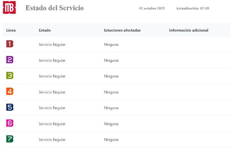 De acuerdo con la información actualizada a las 7:05, las siete Líneas del Metrobús están trabajando con normalidad, sin bloqueos o estaciones cerradas. Eso sí, los usuarios deben mantenerse informados sobre los cambios que se puedan presentar a lo largo del día debido a las movilizaciones sociales que se realizarán este 2 de octubre
