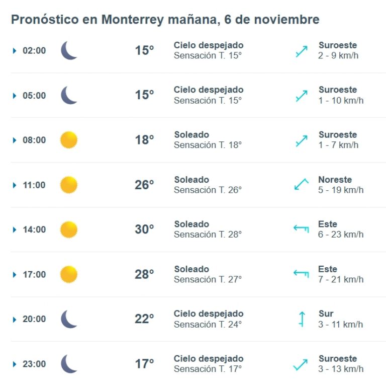 ¿Cuáles serán las temperaturas para Monterrey este jueves 6 de noviembre?