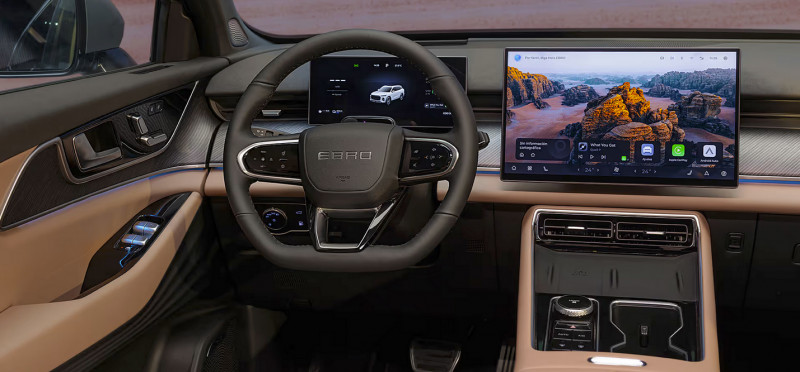 El estilo del nuevo EBRO s900 Híbrido Enchufable deja claro que estamos ante el modelo insignia de la marca. Las proporciones robustas, la presencia elevada y la atención al detalle en cada superficie le dan un aire moderno y sofisticado. Este diseño se distingue por su contundencia exterior.