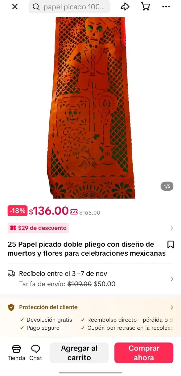 Precios del papel picado en Temu