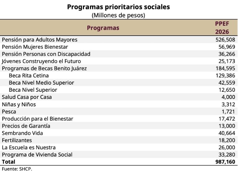 El pasado 10 de septiembre, el secretario de Hacienda y Crédito Público, Edgar Amador Zamora, dijo que como parte del Paquete Económico 2026 se tiene contemplada una inversión de 987 mil millones de pesos para programas sociales, lo que representa poco más de 2.5 por ciento del Producto Interno Bruto (PIB).
