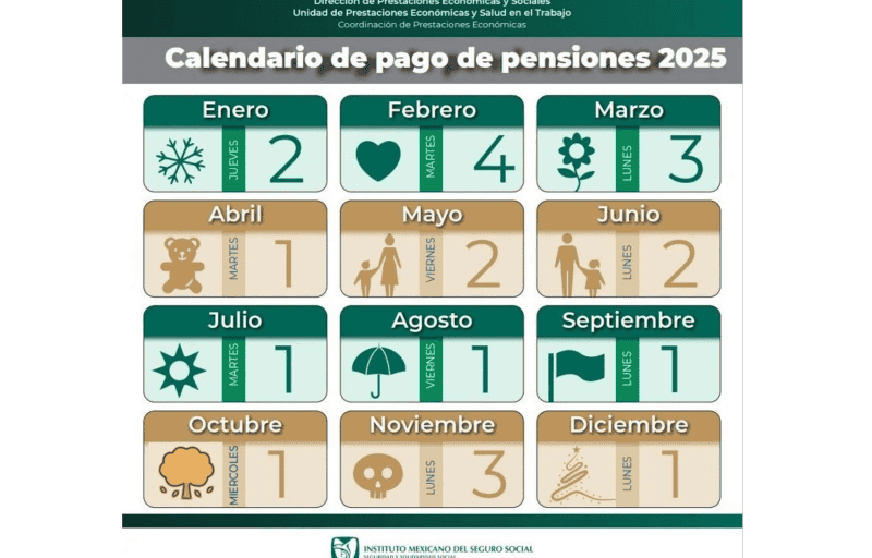 De acuerdo con el calendario oficial, el pago de la pensión del Instituto Mexicano del Seguro Social (IMSS) correspondiente a noviembre se realizará el lunes 3 de noviembre de 2025.