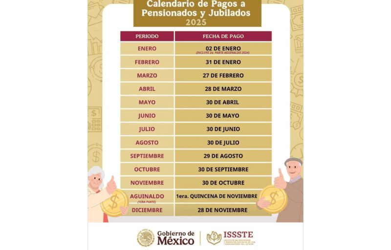 ¿Cuándo se pagan la pensión de noviembre y el aguinaldo del ISSSTE 2025?
