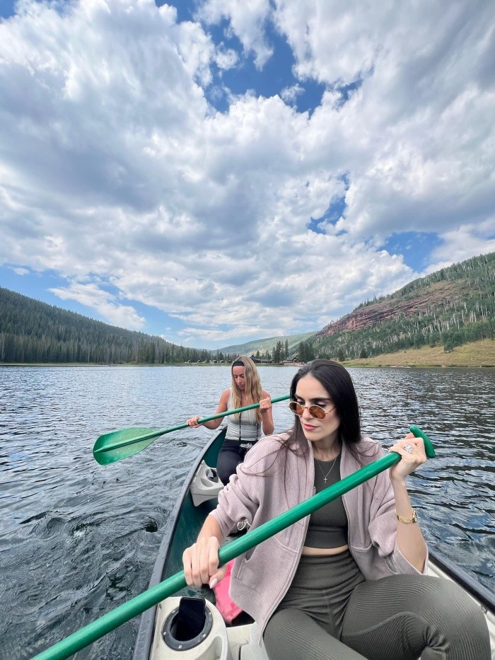 Para quienes buscan ambiente y diversión, el lugar favorito es Chasing Rabbits, el club social por excelencia de Vail, con música, cocteles y experiencias inmersivas. Y, por supuesto, ningún viaje a Vail está completo sin subir en la góndola a la montaña, algo que ellas hicieron para tomar una clase de yoga con vistas impresionantes al valle.