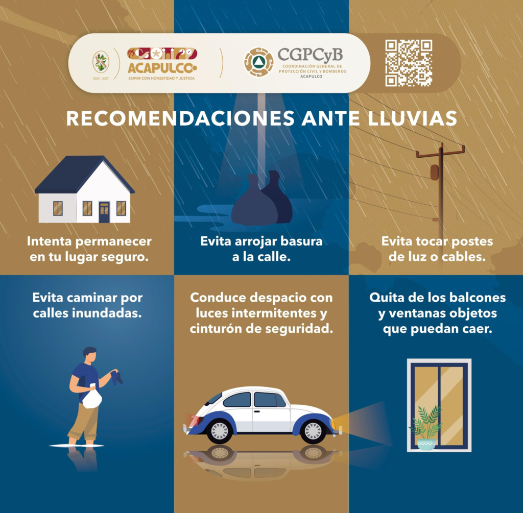 El gobierno municipal puso a disposición de la población los números de emergencia para reportar cualquier situación de riesgo: Protección Civil (744 483 8328 y 744 485 6179), línea 072, Bomberos (744 484 4123) y el número de emergencias 911.