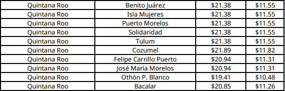 En Chetumal (Othón P. Blanco), capital de Quintana Roo, el precio máximo aplicable por kilogramo aumenta a 19.41 pesos.