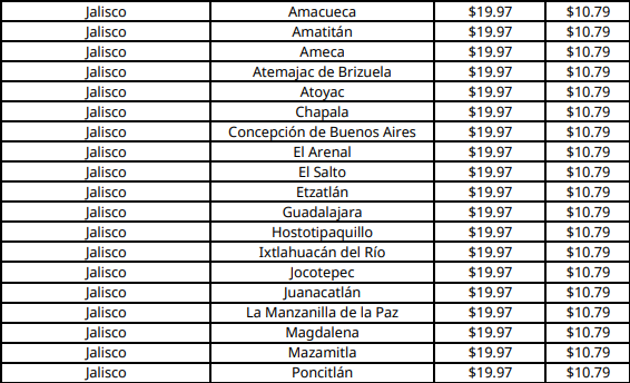 La CNE informó que el costo máximo del combustible será de 19.97 pesos en Guadalajara, la capital de Jalisco.