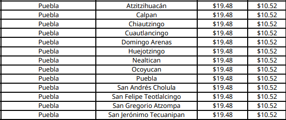 En Puebla capital el costo máximo por kilogramo será de 19.48 pesos.