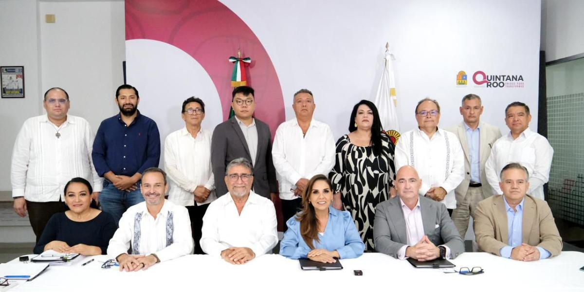 Paul Carrillo de Cáceres, secretario de Desarrollo Económico; Eric Arcila Arjoa, jefe de la Oficina de la Gobernadora; Carlos Felipe Fuentes, Consejero Jurídico; Elda Xix Euán, secretaria de Educación; Raymundo Barredo Mújica, administrador general Único de Mercado Imperial Azteka, y José Antonio Escamilla, coordinador general del Corredor Maya.