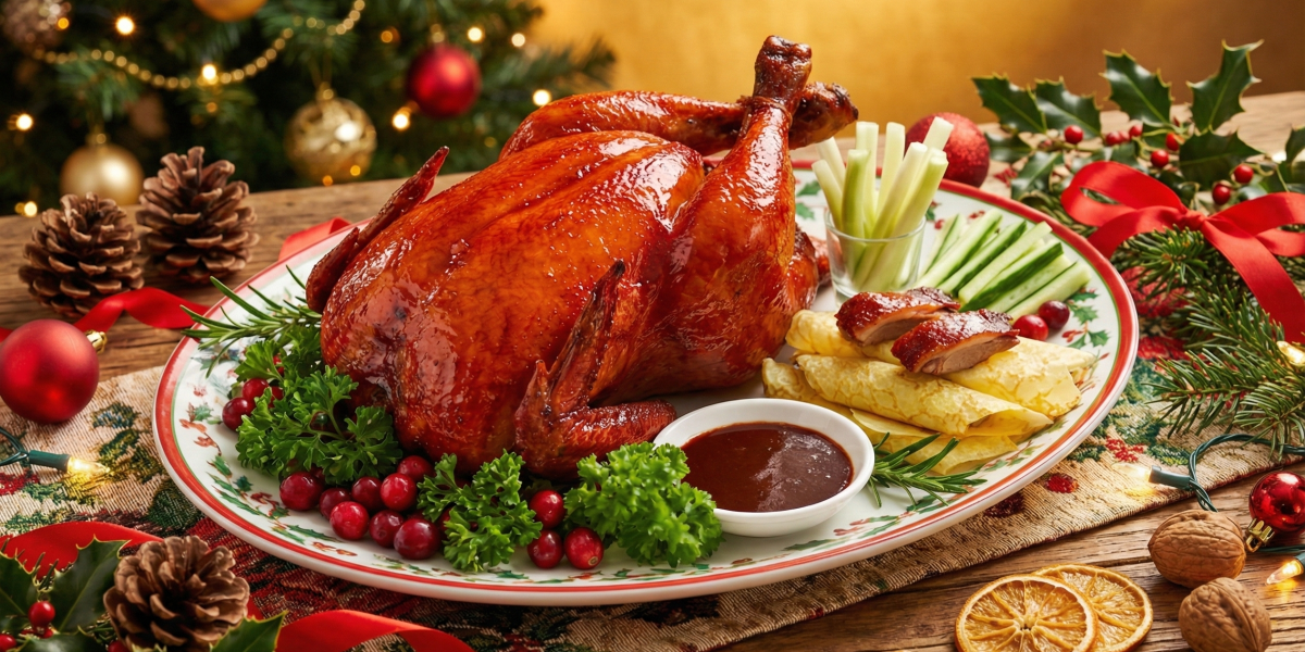 Esta receta toma inspiración de sabores orientales —soya, miel, especias— y los lleva al terreno navideño con notas dulces, saladas y aromáticas. El resultado es un pollo jugoso, brillante y con carácter, ideal para quien quiere lucirse sin pasar horas en la cocina.