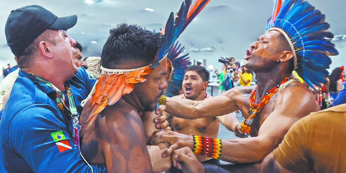 Desde el martes pasado, decenas de representantes de los pueblos indígenas de la región amazónica se enfrentaron con guardias de seguridad en el Centro de Conferencias de la ciudad brasileña con el objetivo, a decir de reporteros de la agencia AFP, de “presentar sus reivindicaciones en el interior, pero no les dejaron entrar”, según explicó Joao Santiago, profesor de la Universidad Federal de Pará.