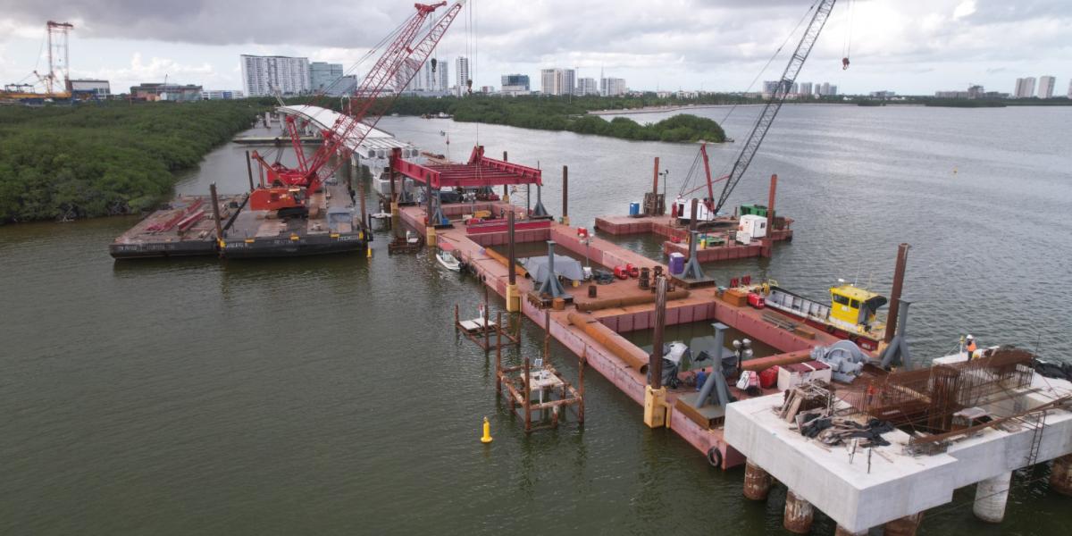 Cancún, QRoo.- La construcción del Puente Nichupté entró en su recta final, con más de 90% de avance de obra.
