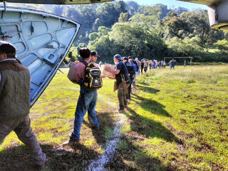 Dos helicópteros partieron desde temprano con destino a Ilamatlán y Zontecomatlán para establecer un puente aéreo que permita llevar alimentos, personal médico y suministros básicos a las comunidades que permanecen aisladas por los derrumbes.