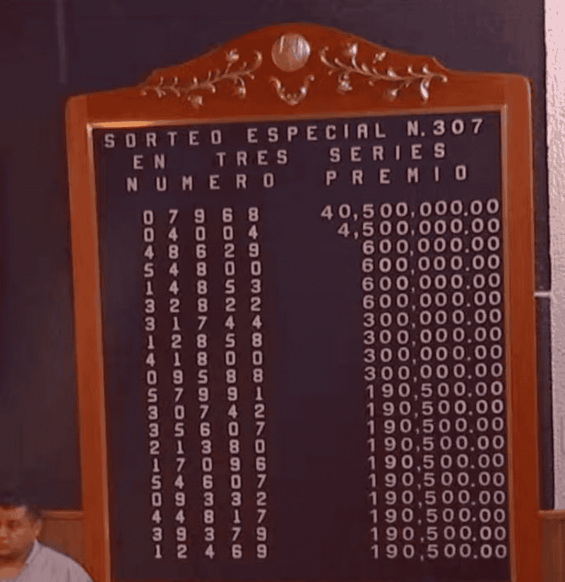 La celebración del Sorteo Especial 307 fue transmitida en vivo a través del canal oficial de la Lotería Nacional, donde se confirmó que el número 07968 fue el ganador del premio mayor.