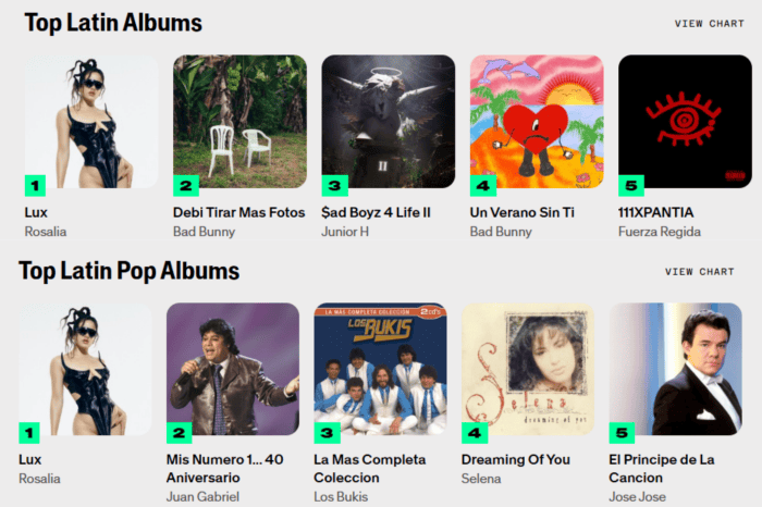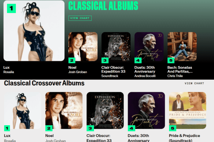 Aunque Rosalía ya había alcanzado el número uno en ‘Top Latin Pop Albums’ con ‘El Mal Querer’ (2018) y ‘Motomami’ (2022), es la primera vez que lidera simultáneamente los listados de ‘Top Latin Albums’, ‘Classical Albums’, ‘Classical Crossover’ y ‘World Albums’.