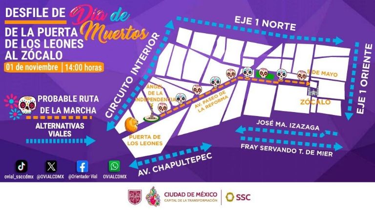 Para que no tengas contratiempos, aquí te decimos la ruta, las calles cerradas y por dónde podrías circular. El evento más importante del día es el Gran Desfile de Día de Muertos, que se llevará a cabo en la Alcaldía Cuauhtémoc con un aforo estimado de 40,000 personas.