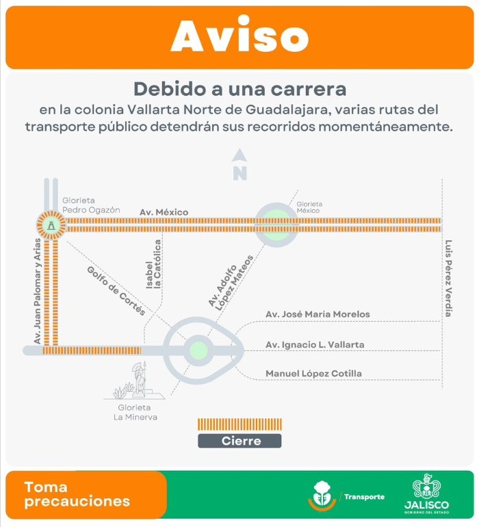 La segunda carrera será en la colonia Vallarta Norte de Guadalajara por lo que se cerrará la Avenida Juan Palomar y Arias y Avenida México.