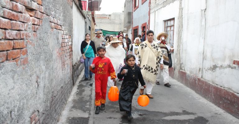 El punto de partida es el panteón del pueblo de San Juan Tlihuaca, en el cruce de Román Álvarez Moreno y Federico Gamboa. Al atardecer, el grupo de animeros y decenas de adultos y niños que se unen a la procesión parten del camposanto; una campana y cohetes anuncian su paso por las calles, que para esa hora lucen los tonos dorados típicos del otoño.