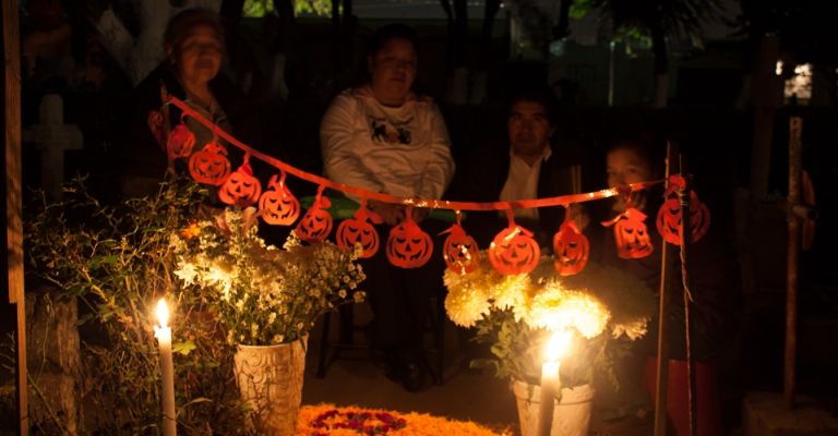 El rito se repite en cada una de las casas que los animeros visitan, y que pueden llegar a ser más de 50. En la noche, cuando el grupo sale de la última vivienda, la procesión camina de regreso al panteón del pueblo, donde ya la esperan las familias de los difuntos que ahí están sepultados. Cada tumba luce adornada con flores, rehiletes, fotos y veladores; ninguna es igual a otra, pero todas logran una armonía que solo se ve una vez cada año.