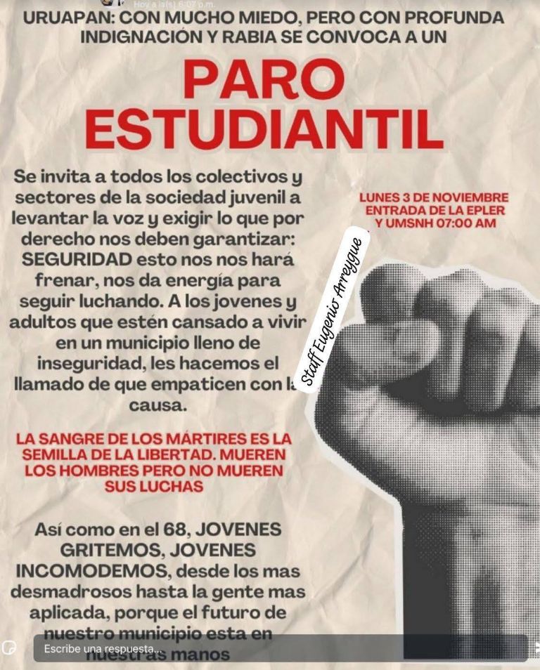 Estudiantes de Uruapan llaman a un Paro Estudiantil tras el asesinarto de Carlos Manzo