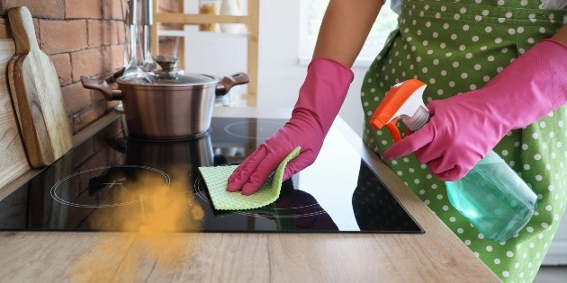 Si al terminar de cocinar detectar la presencia de una mancha, es el momento ideal para eliminarla, ya que si dejas que se seque puede dejar una huella en la pintura. Para estas manchas, puedes limpiar directamente con una esponja con agua tibia y jabón.