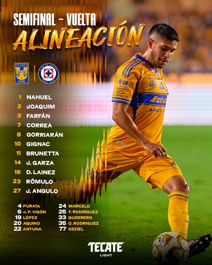 Tigres y Cruz Azul (1-1) se enfrentan este sábado en un duelo decisivo que definirá al finalista del Apertura 2025 en la Liga MX. El vencedor avanzará a la disputa por el título, donde se encontrará con Toluca o Monterrey, según quién gane la otra semifinal.