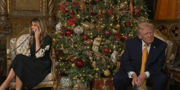 De vacaciones en su finca Mar-a-Lago en Florida, el presidente y la primera dama Melania Trump participaron en la tradición de hablar con los niños que llaman al Comando de Defensa Aeroespacial de América del Norte (NORAD), que de manera lúdica rastrea el trineo de Santa Claus alrededor del mundo.