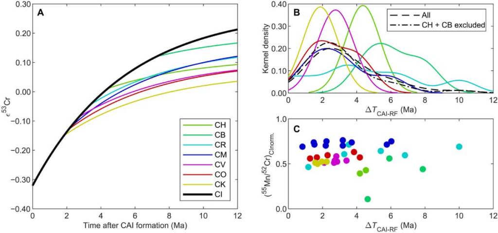 Las curvas de evolución isotópica revelan que el proto-Tierra se formó antes de los tres millones de años tras el nacimiento del sistema solar. Fuente: Science Advances