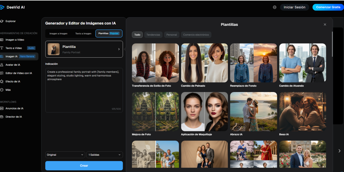 Un generador de imágenes IA para todo: DeeVid AI cubre generación, edición y transformación de IA imágenes
