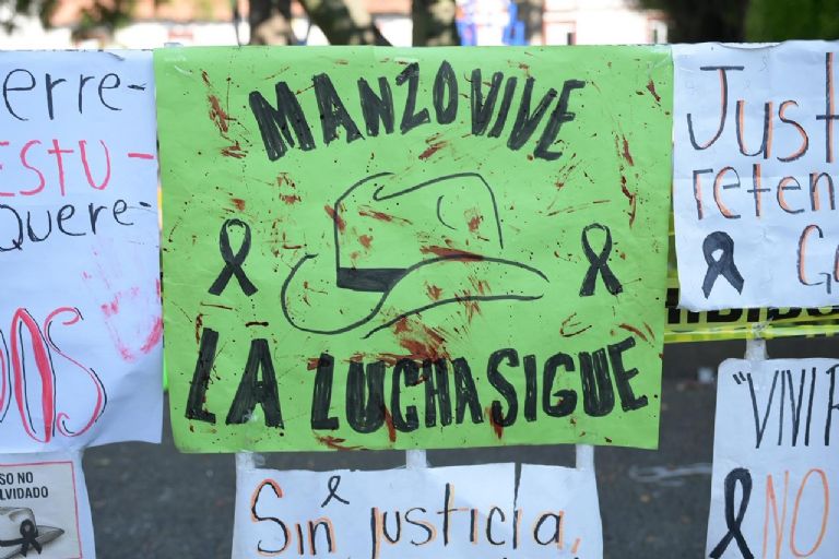 Al arribar a Palacio de Gobierno, los manifestantes entonaron el himno nacional y colocaron un centenar de velas a las afueras del edificio que esta semana ha permanecido blindado ante las protestas violentas registradas tras el crimen contra Manzo Rodríguez.