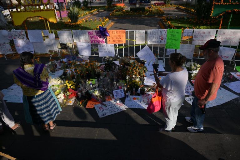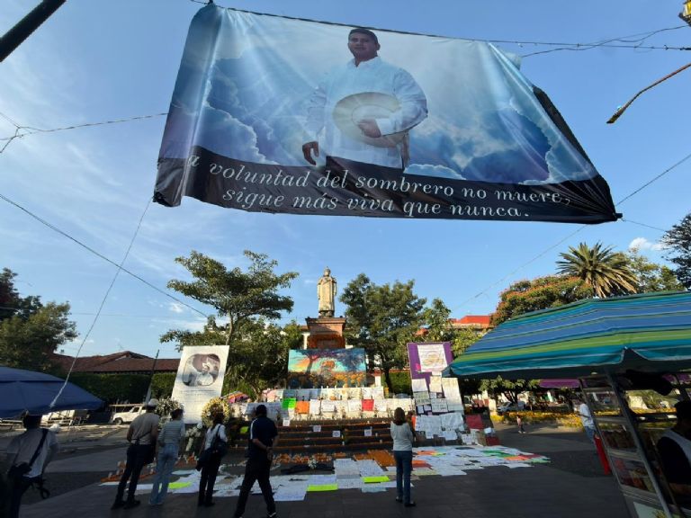 Este jueves las calles de Uruapan fueron ocupadas por la ciudadanía para colocar memoriales por Carlos Manzo. Una fotografía del fallecido alcalde se observa en el centro del municipio, junto con cientos de arreglos de flores, cartas, consignas de justicia y varios sombreros.